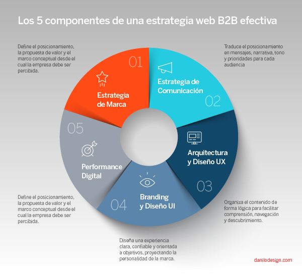 En Danilo Design, trabajamos estos cinco componentes de forma integrada. No como capas separadas, sino como un sistema que se diseña desde la estrategia hacia adelante.